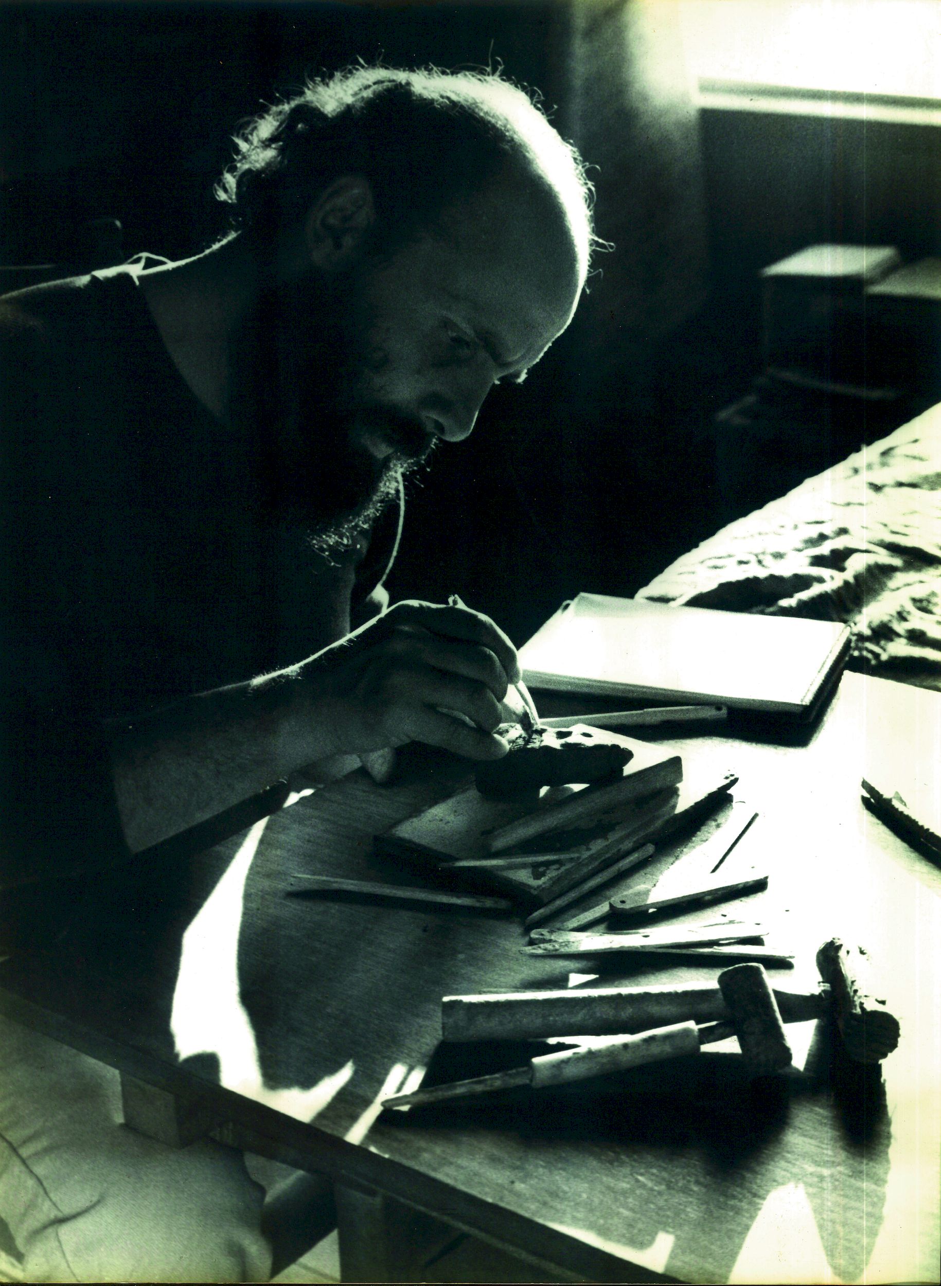 Leonardo Ramos Romero (1954-2019) nacido en Santiago, se desarrolló como artista plástico, primordialmente escultura en piedra y pintura. En búsqueda de formarse como artista, se inició en la Escuela Industrial Nacional Superior de Artes Gráficas (ENAG) en gráfica, litografía y grabado, dando inicio así a su carrera artística. Terminada su educación secundaria, ingresó a la Universidad de Concepción en el año 1976 a estudiar Lic. en Arte mención escultura y filosofía, camino truncado por el contexto socio-político, debido a lo cual continuó y terminó sus estudios como Profesor de Enseñanza Media en Artes Plásticas en 1981.