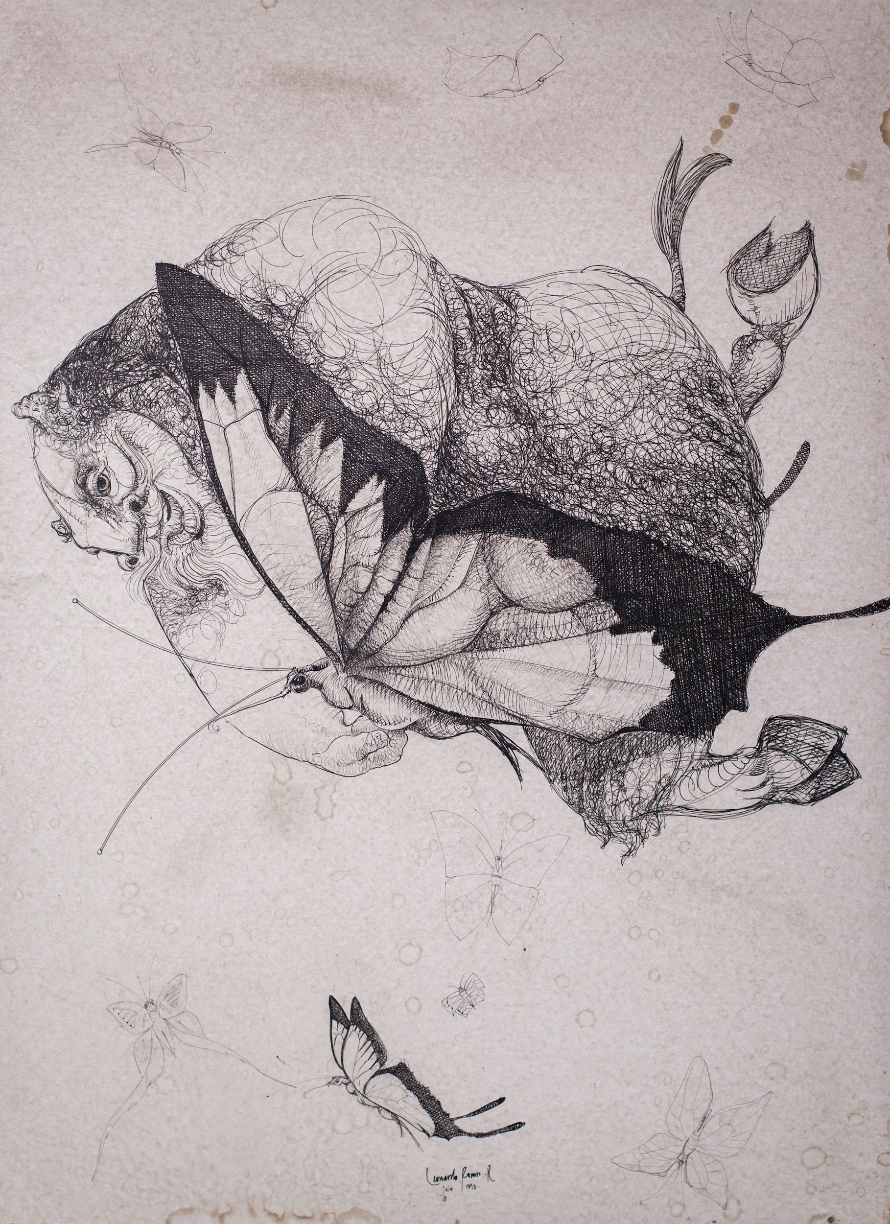 Entre saltos pícaros y fugaces, corren los faunos persiguiendo ardientemente a delicadas, frágiles, hermosas y seductoras mariposas, dejando a su estela, una danza pictórica, plasmada en el papel.