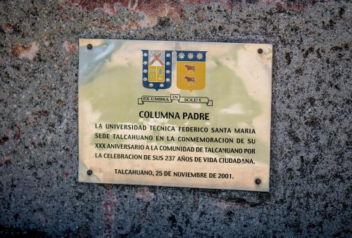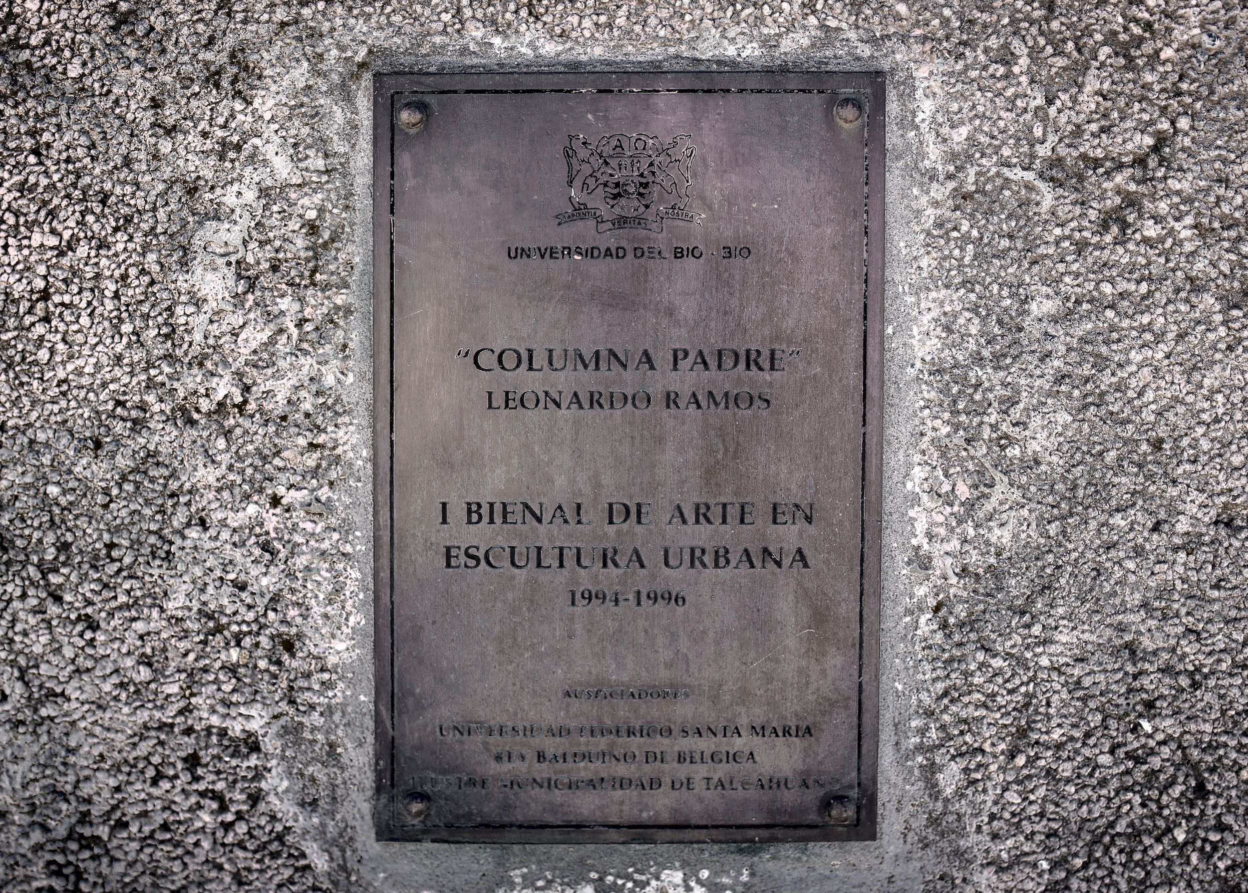 Concebido en piedra rosada, se emplaza en la oreja del desvío hacia la Universidad Federico Santa María, sede Regional Talcahuano, desde la autopista a Talcahuano. Elige la piedra rosada para su obra por ser cálida desde su color y suave de composición, conservando una estructura de granos y rugosidad de texturas que buscaba para concretar su idea. Prefiere en general, la piedra “por sus cualidades métricas, por ser compacta, firme, dura, resistente, misteriosa e impenetrable”. Eligió el nombre Columna Padre porque “desde mi óptica humanista, hombre y sociedad son una unidad indivisible, de manera que las experiencias subjetivas de tener hijos se pueden extrapolar y convertir en una suerte de metáfora de lo que sucede en la sociedad-como padre- respecto de sus hijos, los hombres que integran esa sociedad”.