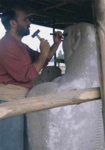 “Columna Padre” piedra rosada 4m , 1era Bienal de Arte en Escultura Urbana, Universidad Federico Santa María.