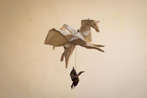 Pliegues y dobleces en búsqueda de dar vida a un cuadrado de papel, que a través de su mutancia da formas animales, mágicas e ilustrativas de lo que la imaginación y la interpretación permita, dando vida así a lo volumétrico de un ser, que antes esperaba aquellas manos transformadoras desde lo bidimensional de su estancia.