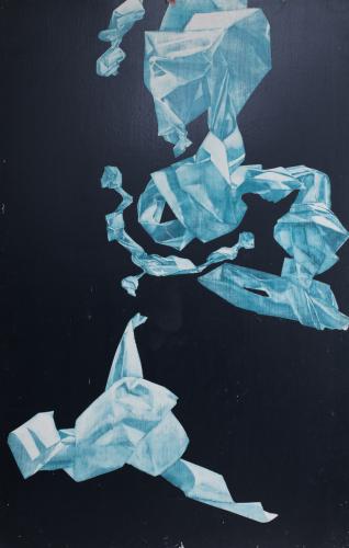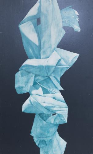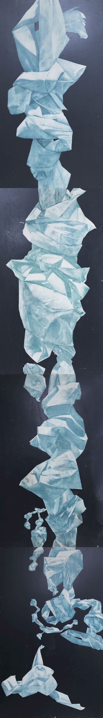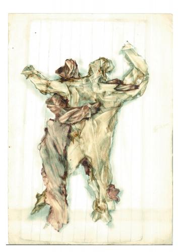 Trozos de papel intentan formarse, armarse para poder comunicar, hablar, ya no con palabras escritas sobre ellos, sino que a través de sus arrugadas formas narran figuras humanas, parajes lejanos y cálidos encuentros.